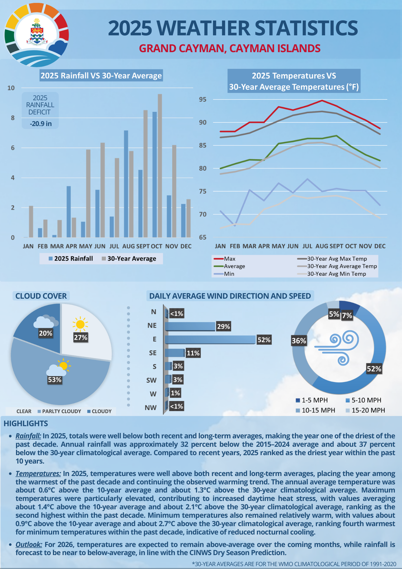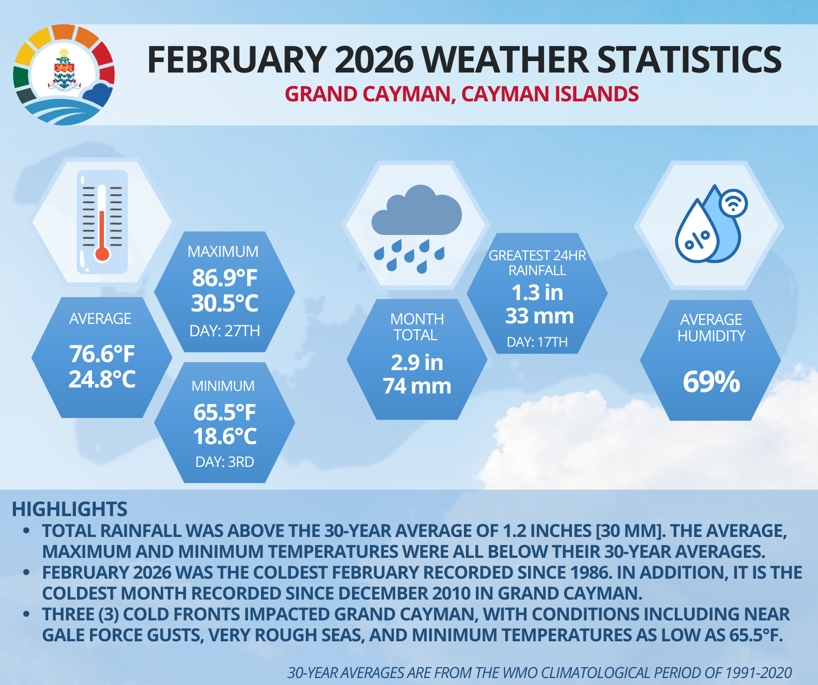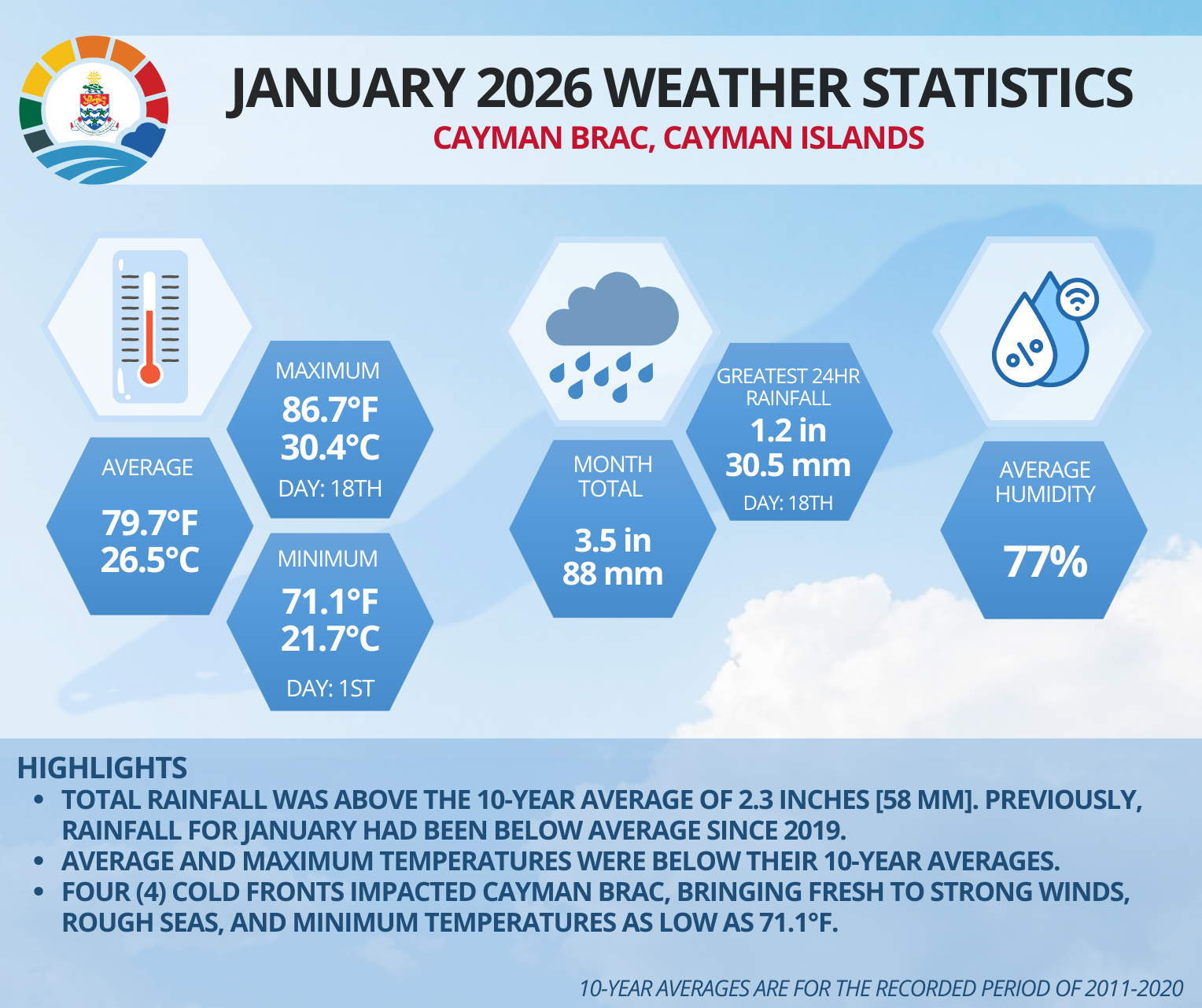 Monthly Weather Statistics Graphics For Grand Cayman and Cayman Brac